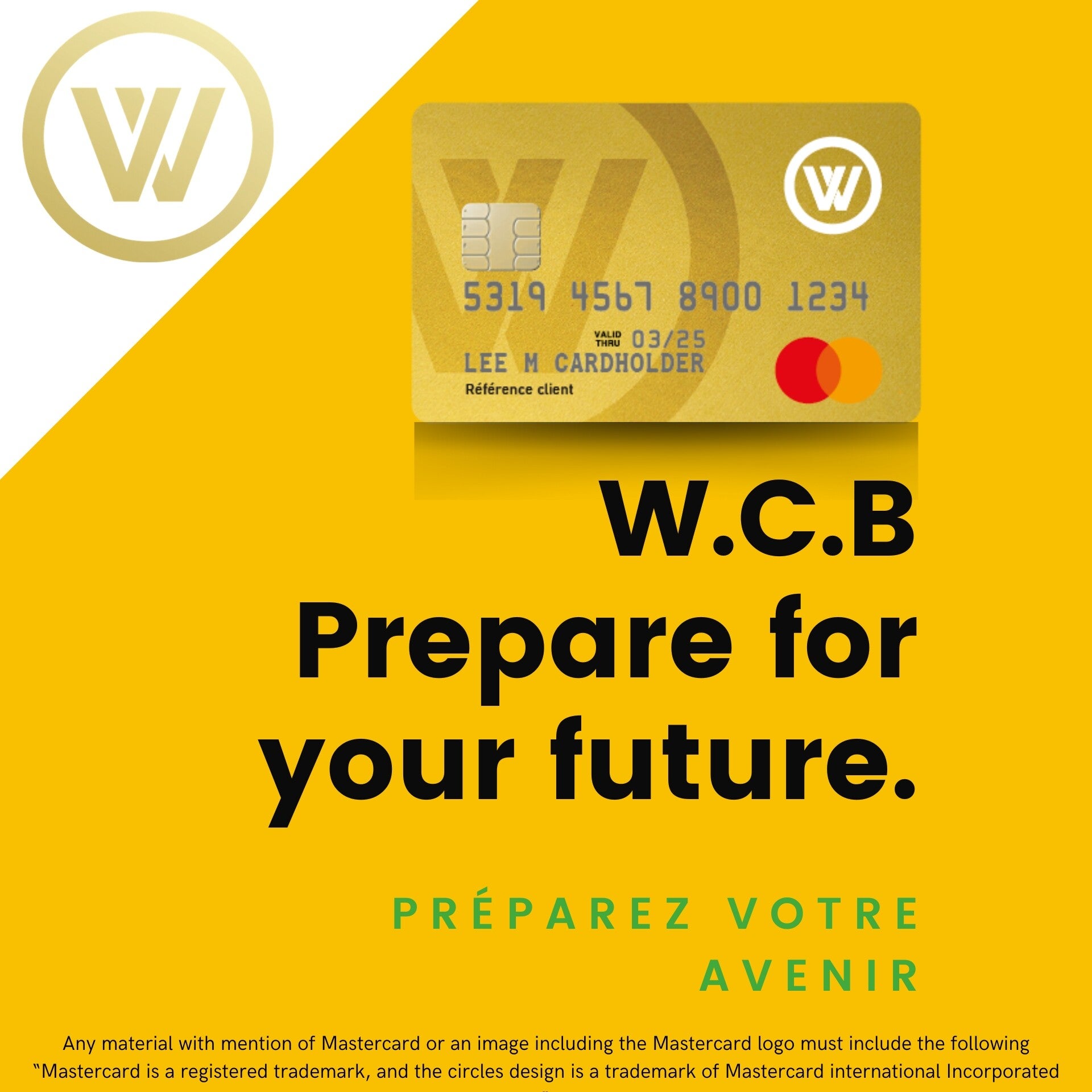 Carte W.C.B Mastercard pour particulier en précommande pour 2025.